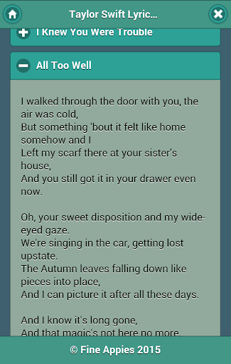 Are you a big fan of Taylor Swift ? Here we present the ultimate Taylor Swift Lyrics app for you .