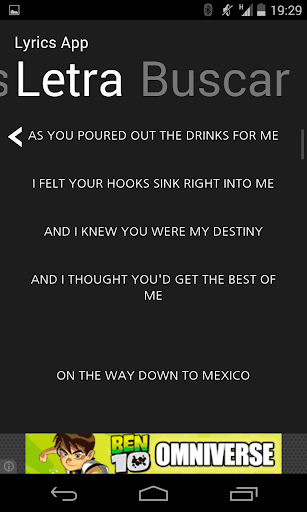 Esta aplicación permite buscar las letras de tus canciones favoritas por titulo y artista.