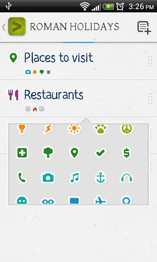 彩色圖標標記重要的事情。每一個音符,都可能有自己的圖標。
