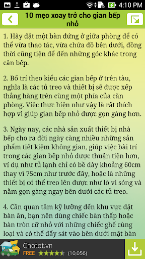 + Cập nhập mẹo vặt mới liên tục từ máy chủ khi có kết nối mạng.