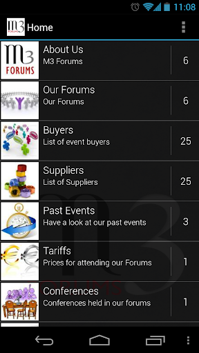 The new M3 Forums App is a way to provide all the general information needed during these events. With our app you will also have in your hand your meeting's schedule for the one-to-one pre-scheduled appointments, all participant's information and contacts and we will keep you informed with push messaging, supplying information about the event's news in real time.
