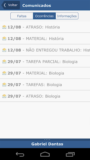 · Visualização de ocorrências (a critério da escola).