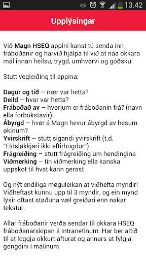 Magn HSEQ is P/F Magn's app for collecting reports regarding health, safety, environment or quality from our employees. One will need username and password to be able to use the app, but everyone is welcome to install it to have a look at the open pages.