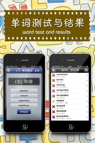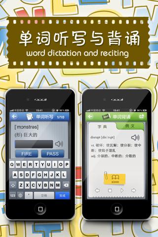 它可以让你的手机瞬间变成一部强大的多功能英语学习机!从此, 您就可以随时随地用手机学习外语, 无论走到哪里, 都可以利用闲暇的时间把手机拿出来背几个单词, 使你能在短时间内迅速提高词汇量!您还可以利用软件中“生词本”的功能把所学英语课本的单词添加进去, 随时拿出来背, 从此再也不用成天拎着书本和电子词典学英语了, 尤其是不用带厚厚的英语词典学习了。,