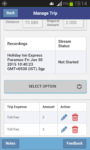 • Automatically uploads mileage / expense details into a Data Collection system, eliminating the weekly task of filling out a mileage report.