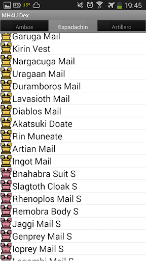 Todas las armaduras del juego, detallando sus habilidades y los elementos necesarios para su formación