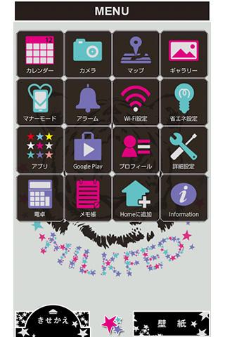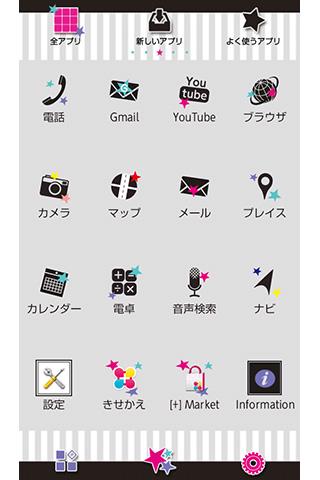 変更…HOMEアプリ「[+]HOME」設定後、端末メニューボタン>きせかえ