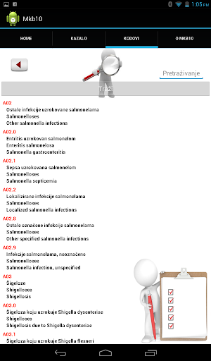 Aplikacija nudi šifranik MKB-10 na hrvatskom,latinskom i engleskom. Korisniku je omogućeno i pretraživanje zapisa po svim kategorijama. Unutar aplikacije se nalazi i opis MKB-10 dijagnostike te njegova upotreba.