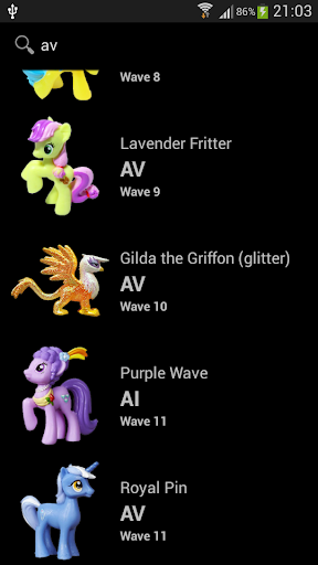- Display all the ponies from waves 1-11