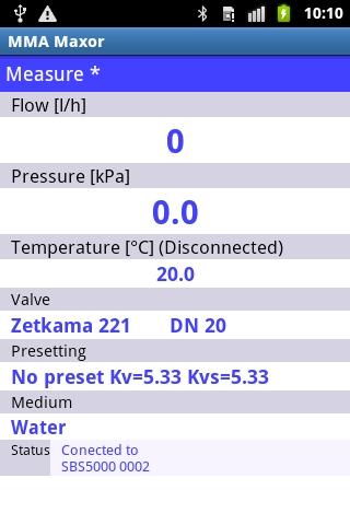 Android application for MMA Maxor pressure unit.