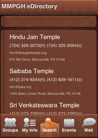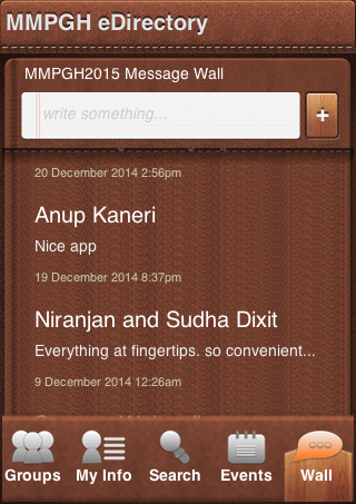 MMPGH eDirectory App is created primarily for members of Maharashtra Mandal Of Pittsburgh community for contact and address sharing. However this app could as well be used by other similar communities and groups. It allows anyone to start a new group. Groups are password protected. Once a group is created, the group leader may invite others to join this group by providing the group name and password. Group members may share their contact info with other members of the same group. The app facilitates searching of group members by name. Events and other community messages may as well be posted by group members. A person could join multiple groups.