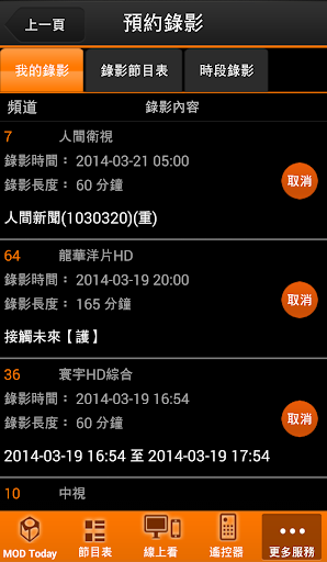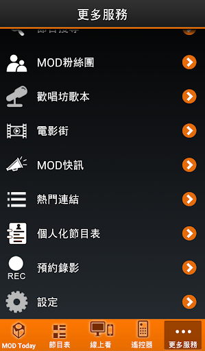 MOD APP 包含遙控器、線上看、節目表、預約錄影、個人化節目表、節目提醒等有趣功能