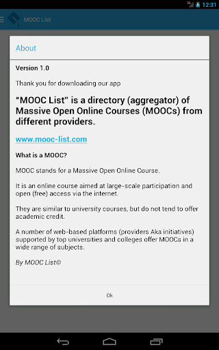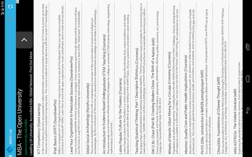 “MOOC List” is a directory (aggregator) of Massive Open Online Courses (MOOCs) from different providers.