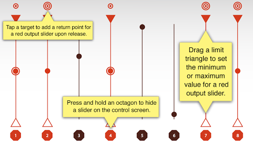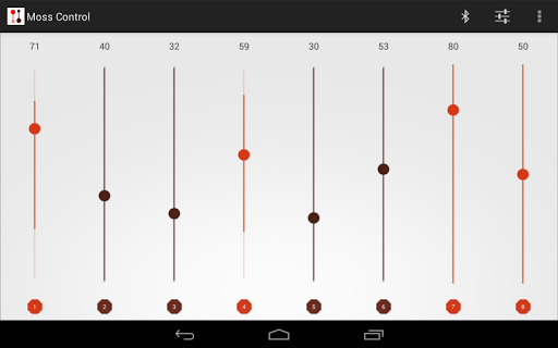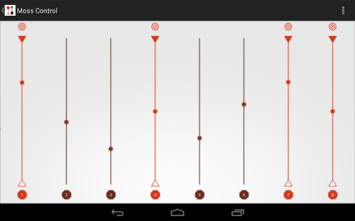 MOSS Control is a two-way remote control app. It has eight sliders; one for each face on the Bluetooth MOSS module. Set some to output and remote control your robot! Set some to input and watch your robot's sensor values change in real time on your mobile device.