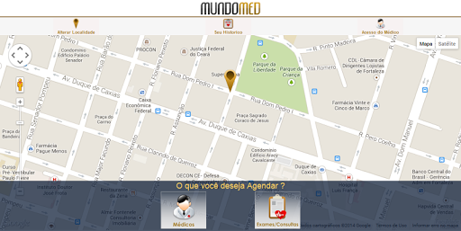 O MUNDOMED permite o agendamento de exames de diagnóstico por imagem e de especialidades médicas, utiliza filtros, como planos de saúde, tipos de exames, etc, facilitando a busca de locais próximos ao usuário, graças ao sistema de Georreferenciamento, onde o usuário pode ver o local mais próximo que atende a sua necessidade.