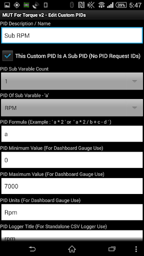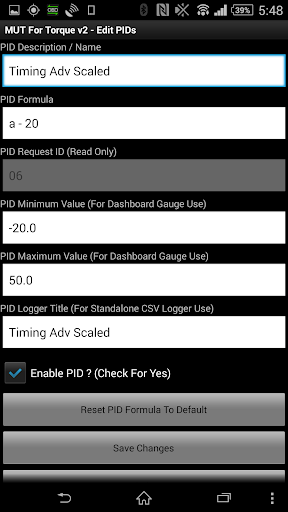 6) Editing Of Legacy Added PIDs Are Done Through Torque.