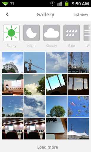 • View gallery of reported weather, filtered by category: sunny, cloudy, rain, windy, haze, flooding, and thunderstorm.