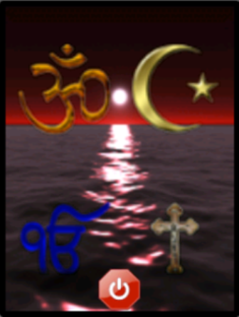In application you can listen prayer of different religions such as Hindu Muslim Sikh Christian and you can set alarm alert as one of these prayers. Sab Ka Malik Ek - God is one.