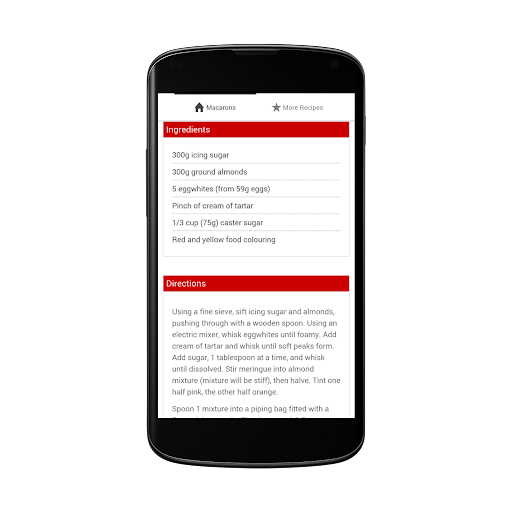 The Macarons Recipe Application contain famous Macarons Recipes in English Language.