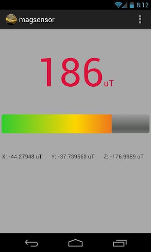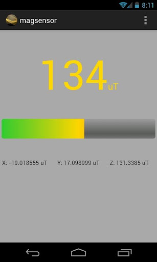 Utiliza tu dispositivo android para detectar metales y campos electromagnéticos. Esta aplicación te mostrará los valores del campo electromagnético detectado a partir del sensor electromágnetico de tu dispositivo android y te avísará del incremento de este campo mediante una señal acústica.