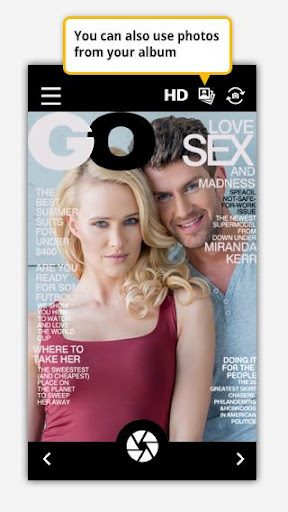 Magazine My Photo’s image editor lets you use saved or freshly taken photos to frame on a famous magazine cover. Use pic editing to add photo effects like rotation and zooming to get just the right angle and be a part of a fashion magazine parody or sculpture your most glamorous shot on the Vogue magazine.