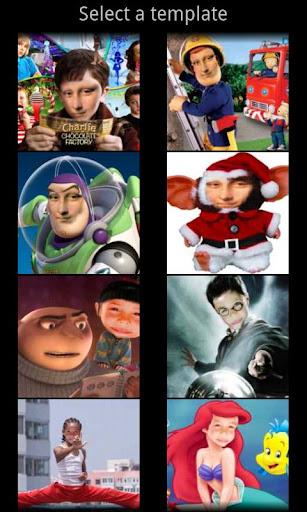 Just press the button and select from one of many pictures in which you can star! Then share with your friends on Facebook or via email or mms.