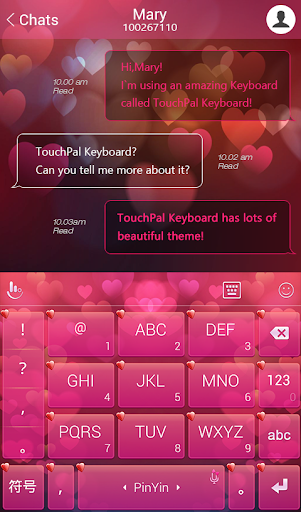With TouchPal Keyboard theme - Valentine Magic Love for Girl, there is no need to use the featureless default theme as others anymore. A special theme will bring your keyboard a brand new look & feel. Check this FREE personalized design for you right now!