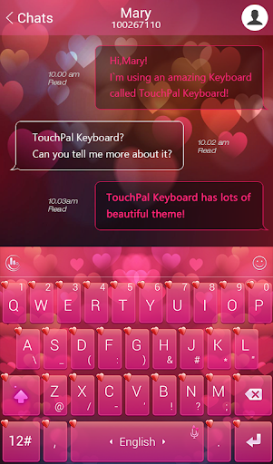 Download the TouchPal Keyboard theme - Valentine Magic Love for Girl ---> Press the icon ---> Press the 'Enable' button---> back to your keyboard!