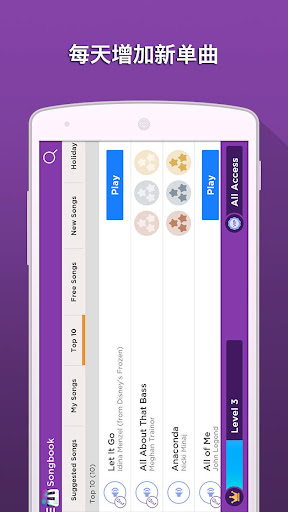 进入新游戏演奏模式,通过演奏赢得奖励! 从“新手”开始您的旅程,直至赢得“钢琴大师”的地位。
