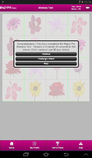 You can build your profile and submit scores at the end of each game so that you can invite others to challenge you. The best scores will always remain updated in Magic Pot Games' 'Hall of fame' wall.