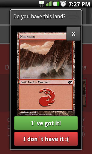 MagicLands is the application that will let you complete your Magic the Gathering Basic Land Collection. Keep track of the ones you have and check the picture of the ones that you are missing. Dive on your local Store or Friend ShoeBox to search your basic lands with a proper companion :)