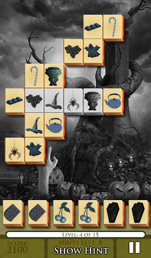 A relaxing Mahjong game with spooky artwork and music. As you remove the tiles you reveal a gray scale image. When the entire level is complete the image fades into color.