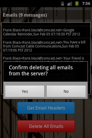 MailClean is a simply utility app that will delete all emails on a specified POP3 mail server. You can retrieve the currently available email subject headers for all existing emails on the server, and then delete all of them at a push of a button. This is a handy utility if you use an email client on your Windows or Mac desktop machine and don't normally delete your emails from the server. You can now simply run MailClean and delete all emails that are present on your mail server!
