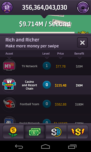 So swipe, swipe, swipe and keep swiping! You can also just click the bills all the way to mega-tycoon status.