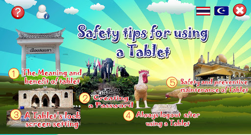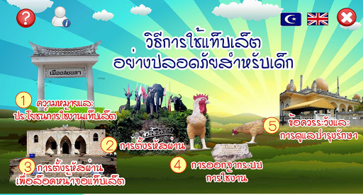 บทเรียน Animation เรื่อง "วิธีใช้แท็บเล็ตพีซีอย่างปลอดภัยสำหรับนักเรียน" ที่เหมาะสมกับนักเรียนชั้น ป.1 ในพื้นที่ 4 จังหวัดชายแดนใต้ แสดงผลเป็น 3 ภาษา คือ ไทย อังกฤษ และยาวี