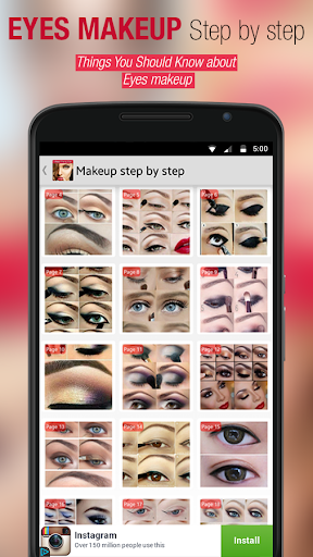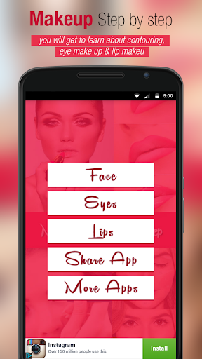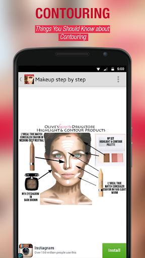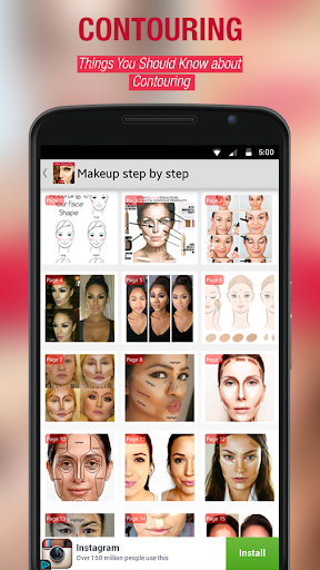 Now you can become more beautiful. With this application of makeup tutorials step by step you will get to learn about contouring, eye make up & lip makeup. With the help of this app you'll be the star of the night at every party, wedding or any other occasion. Easy and step by step tutorials for practicing. Create smokey eyes, use foundation, shape your eyebrows, apply blush, cover up acne, put on lipstick and much more.