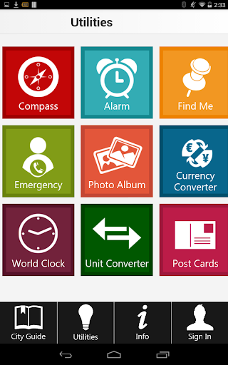 • Comprehensive set of utilities and tools that will help you plan your trip. Organize checklist, send postcards, bringing a collection of useful travel apps within a single app.