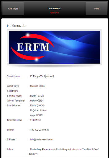 Şirket Ünvanı : Er Radyo TV Ajans A.Ş.