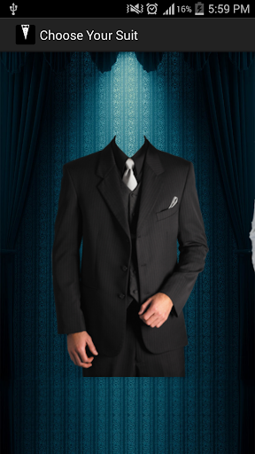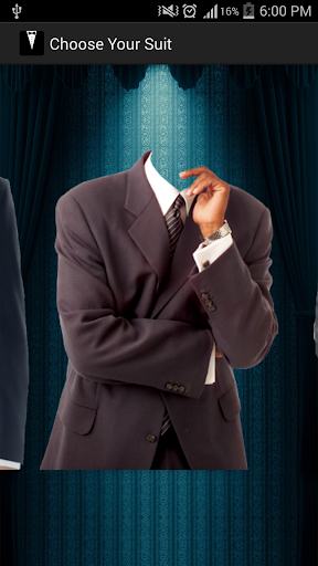 Man Suit Photo Camera application you can put your face into several nice men suits.