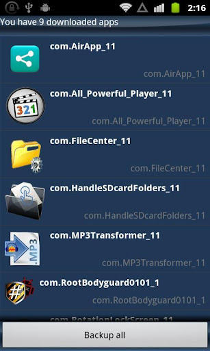 3. Applications part. Open the applications backup and you will know how many applications you own, you can backup them all in one key. The backup will be saved in sd card under this app¡¯s folder.
