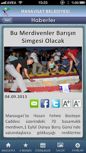 Manavgat Belediyesi hakkındaki haberleri, duyuruları, etkinlikleri rahatlıkla iPhone uygulamamızdan öğrenebilirsiniz.