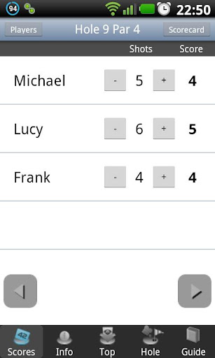 A live weather interface, view the current weather at the golf course or view the forecast for the coming days.