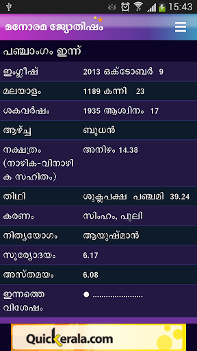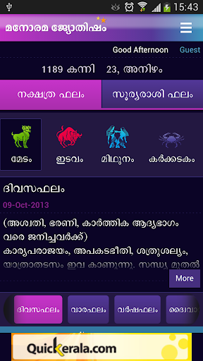 Are you troubled with happenings in your life? Are you worried about your job? Are you compatible with your partner? Are you eager to know what your stars have in store for you? Then you definitely need to log into the Malayala Manorama astrology app that helps you to understand your future easily using your mobile device. Quickly accessible, the app, which provides details for professionals and youth, allows you to check for information wherever you go.