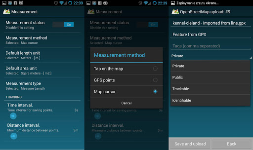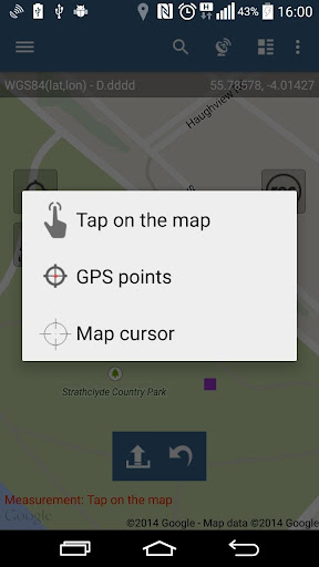 - 3 methods of measurement are supported (Tap on the map, GPS location, Map cursor location).