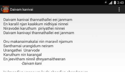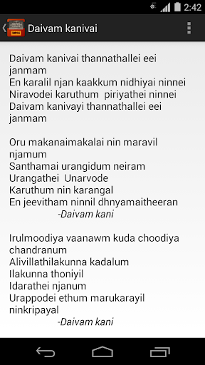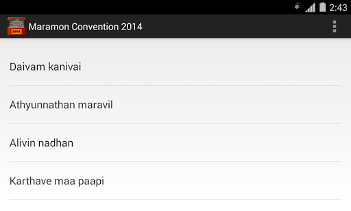 This application contains the song lyrics for all the Maramon Convention 2014 songs.