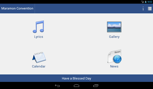 Unique application based on World Famous Maramon Convention. With MaramonConvention Android App, you can view the Lyrics of World famous Maramon Convetion Songs.