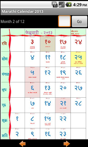 Marathi Calendar 2013 with zoom, similar to Kalnirnay