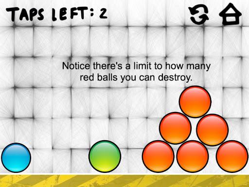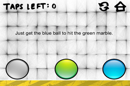 Marble Physics is a puzzle game. Your goal is to get the blue ball to hit the green ball by destroying red balls.