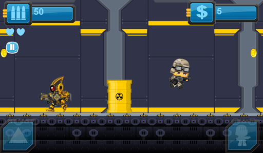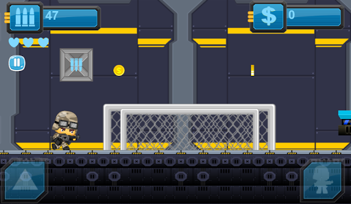 Jump!! Shoot!! Explore the scenes and get the exit from the machines manufactures. But be careful, because there are a lot of dangers.