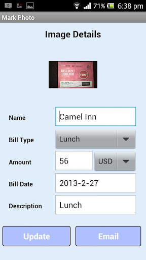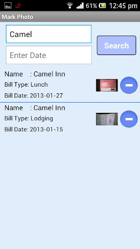 Just click to capture the bill image, add description and upload. You can then search your bills, see details and send as a mail attachment.